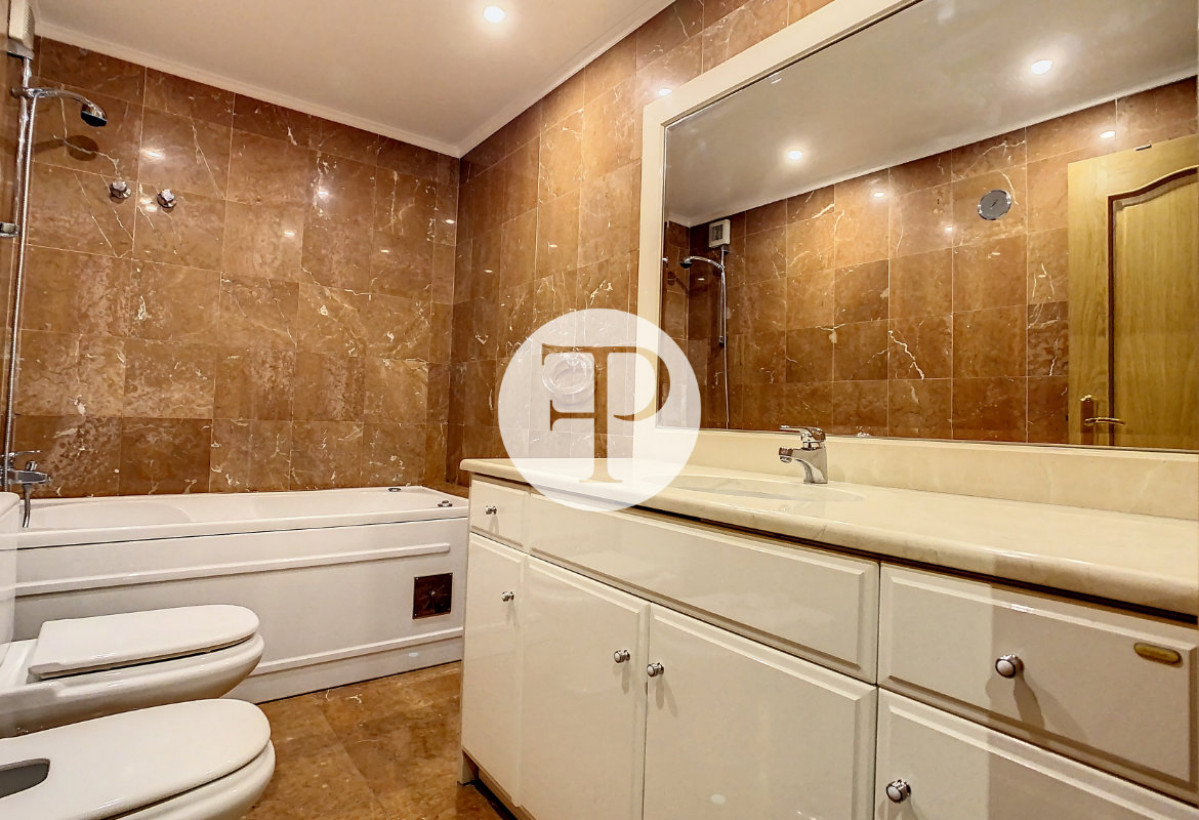 Room with about 40m2, two marble bathrooms with jacuzzi, one of them in suite. Fully equipped kitchen and central heating.