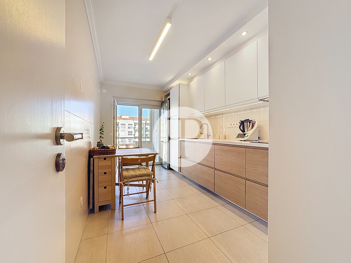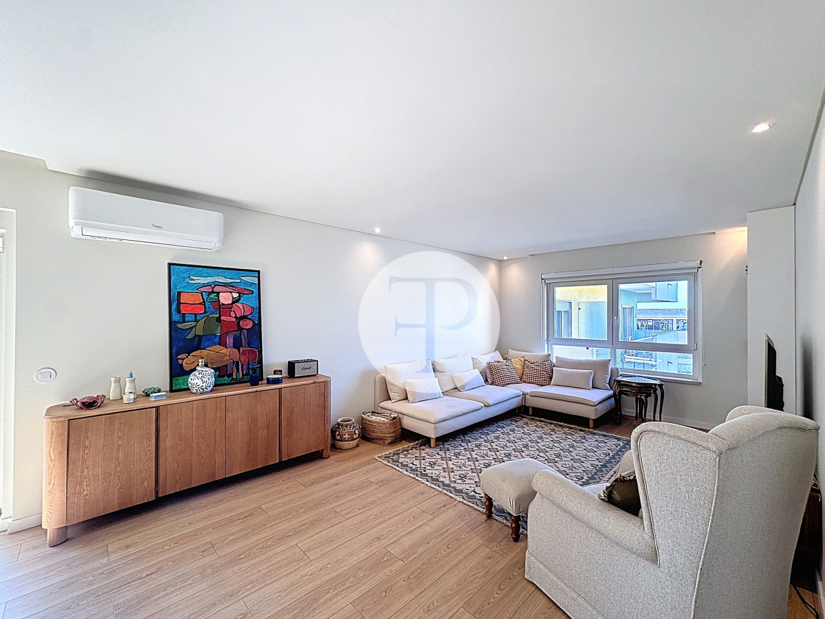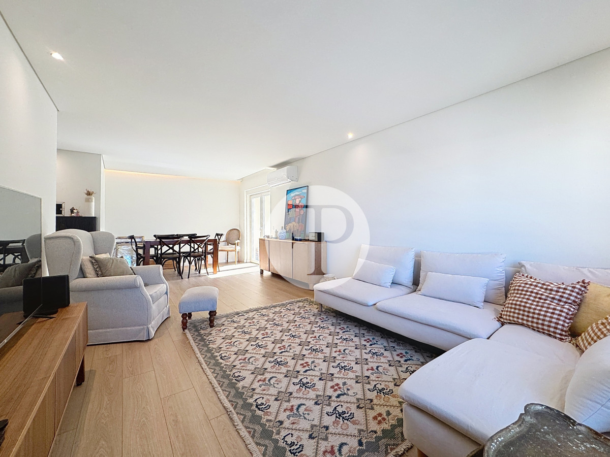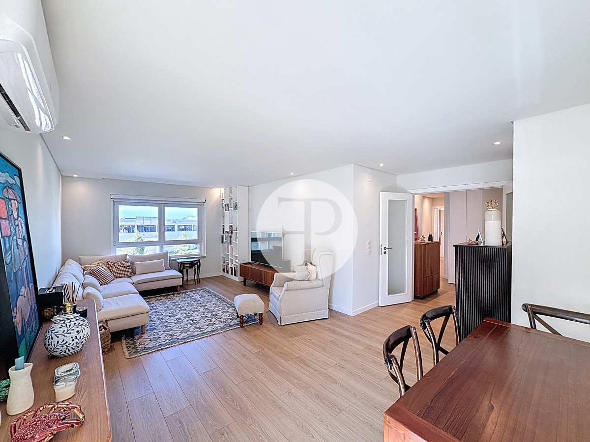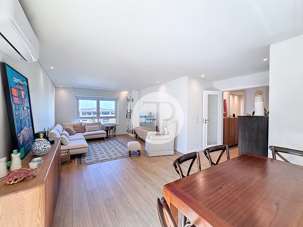 The living room, with 29 m², is spacious and filled with natural light, and offers direct access to a second balcony.