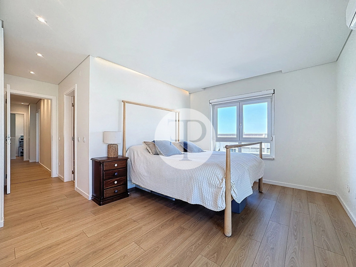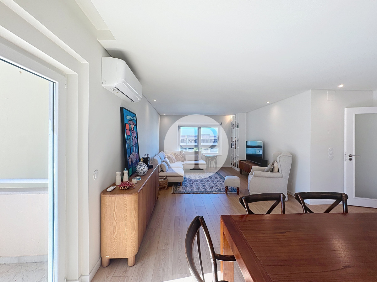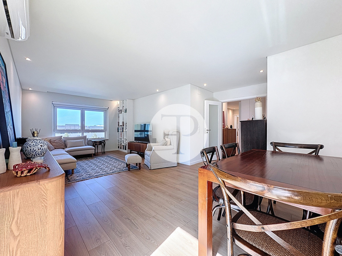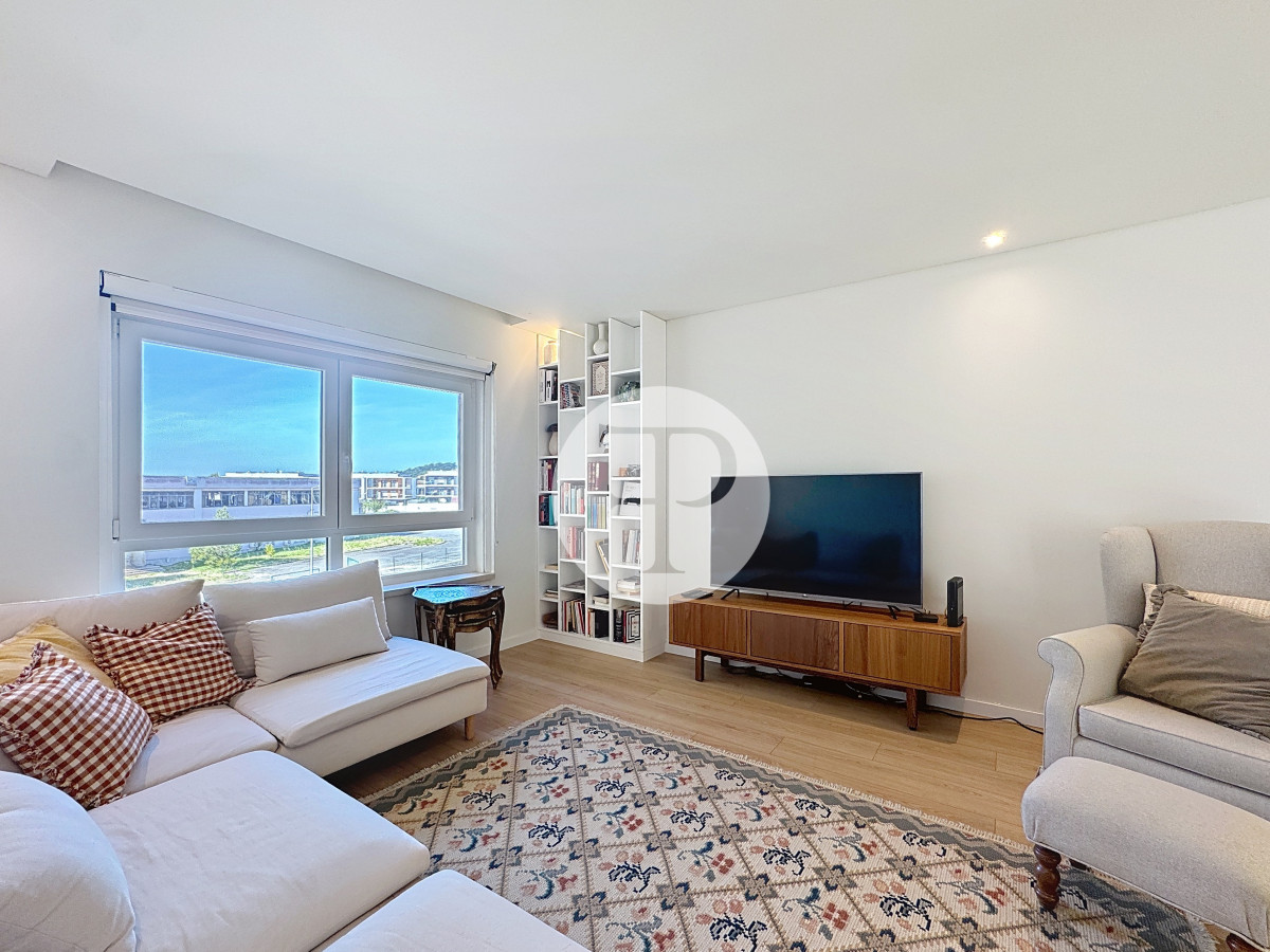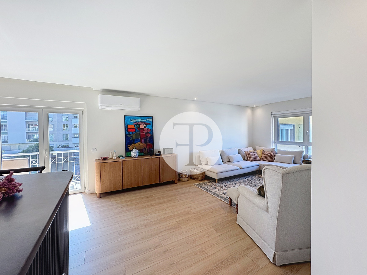 The living room, with 29 m², is spacious and filled with natural light, and offers direct access to a second balcony.