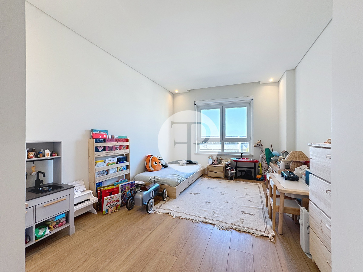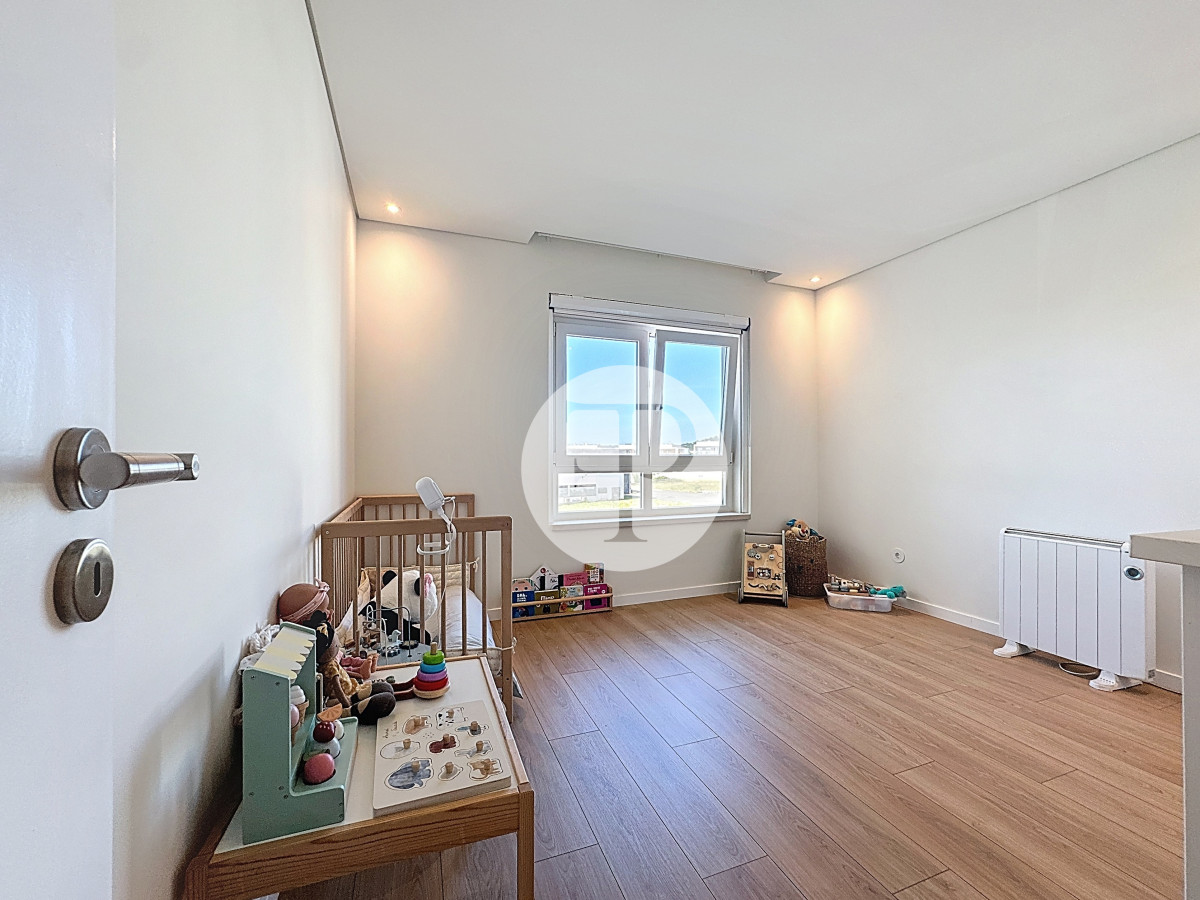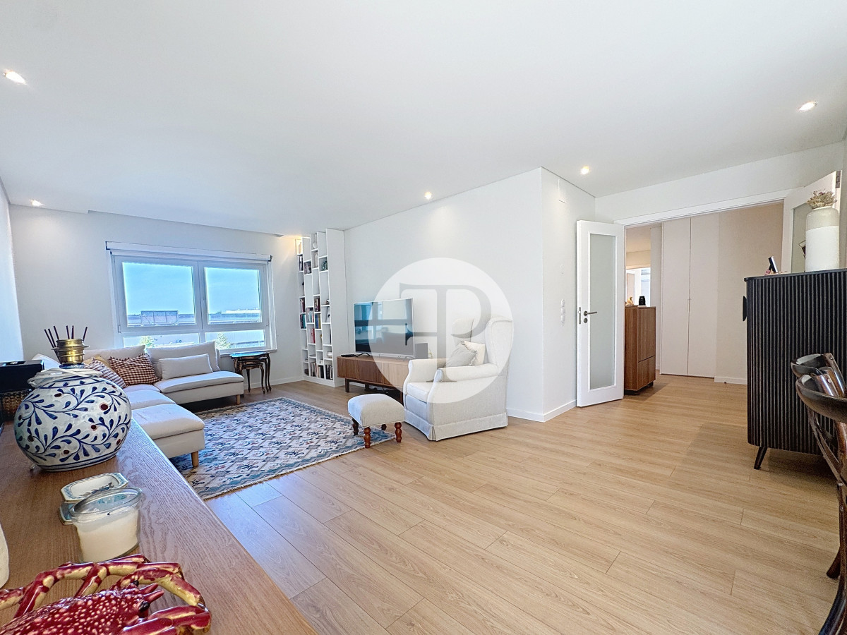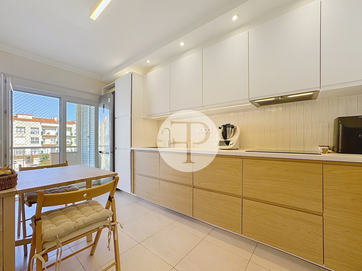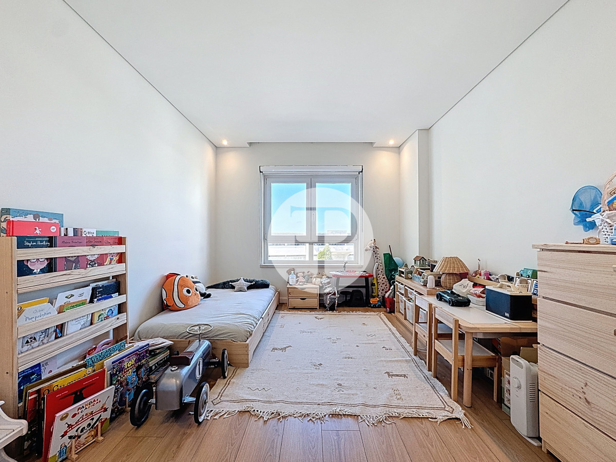 The living room, with 29 m², is spacious and filled with natural light, and offers direct access to a second balcony.
