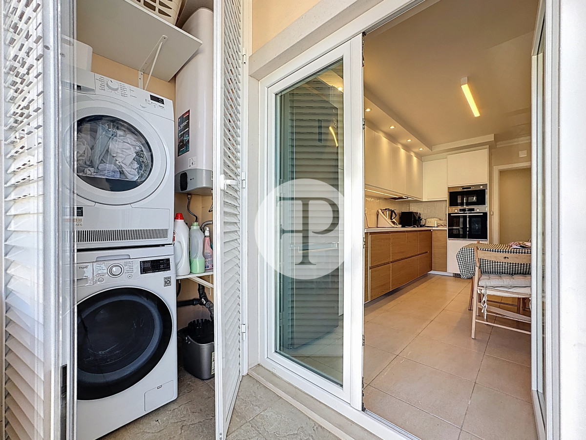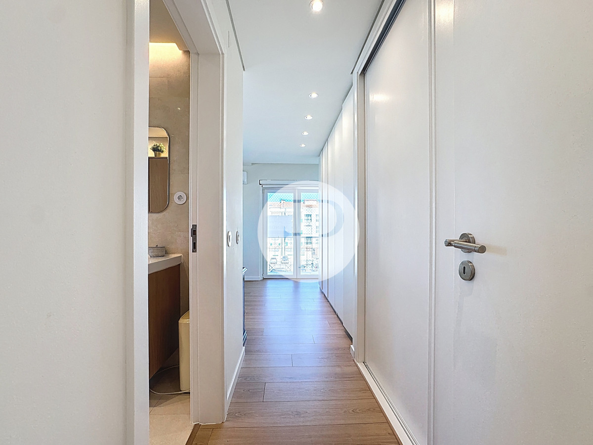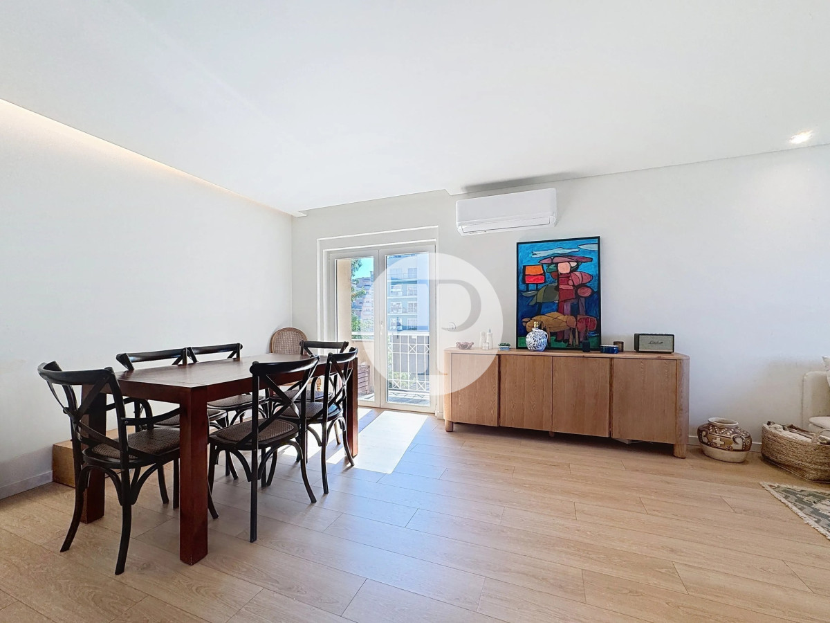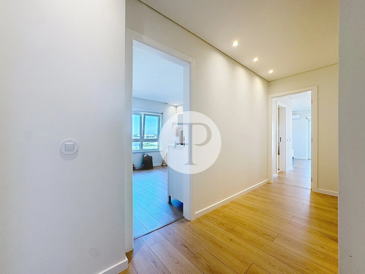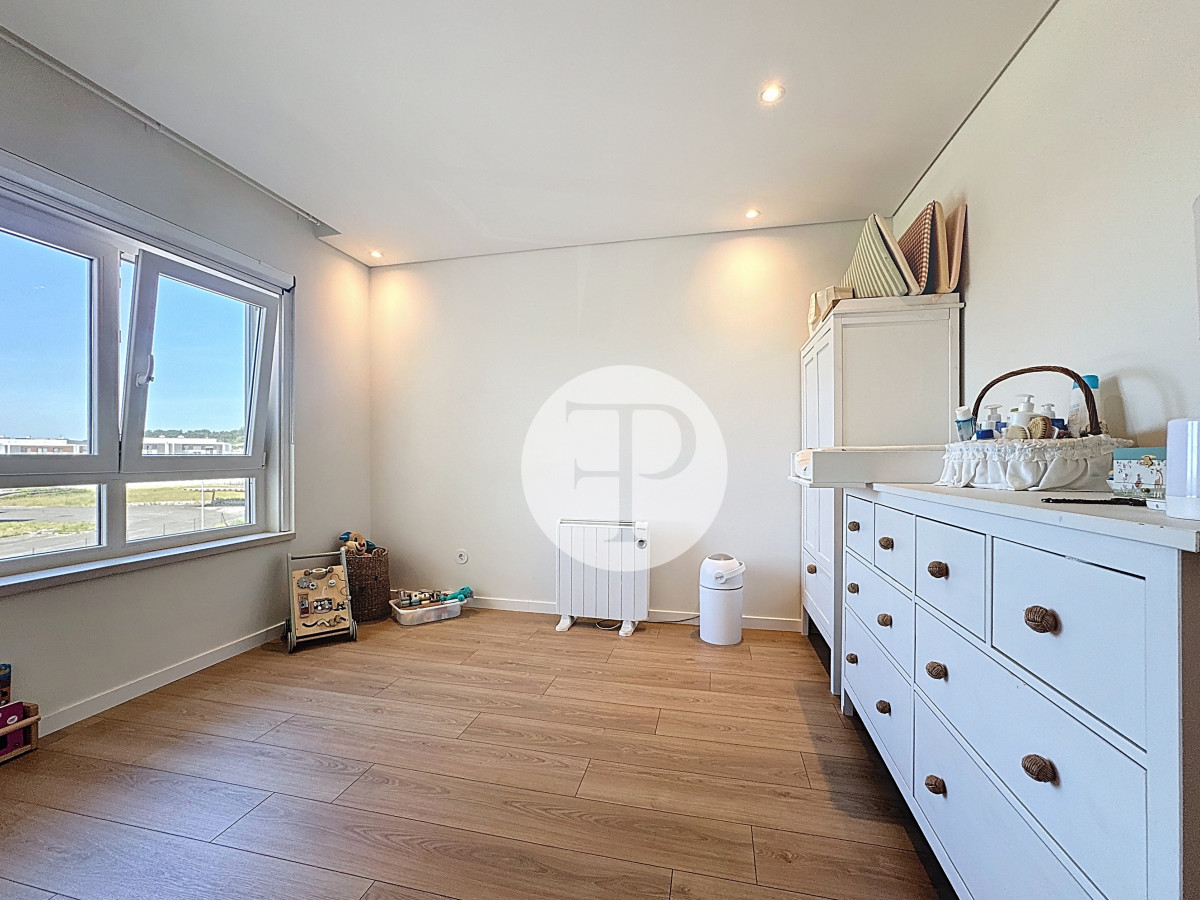 The living room, with 29 m², is spacious and filled with natural light, and offers direct access to a second balcony.