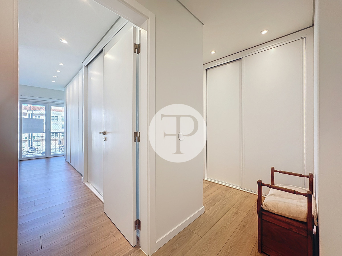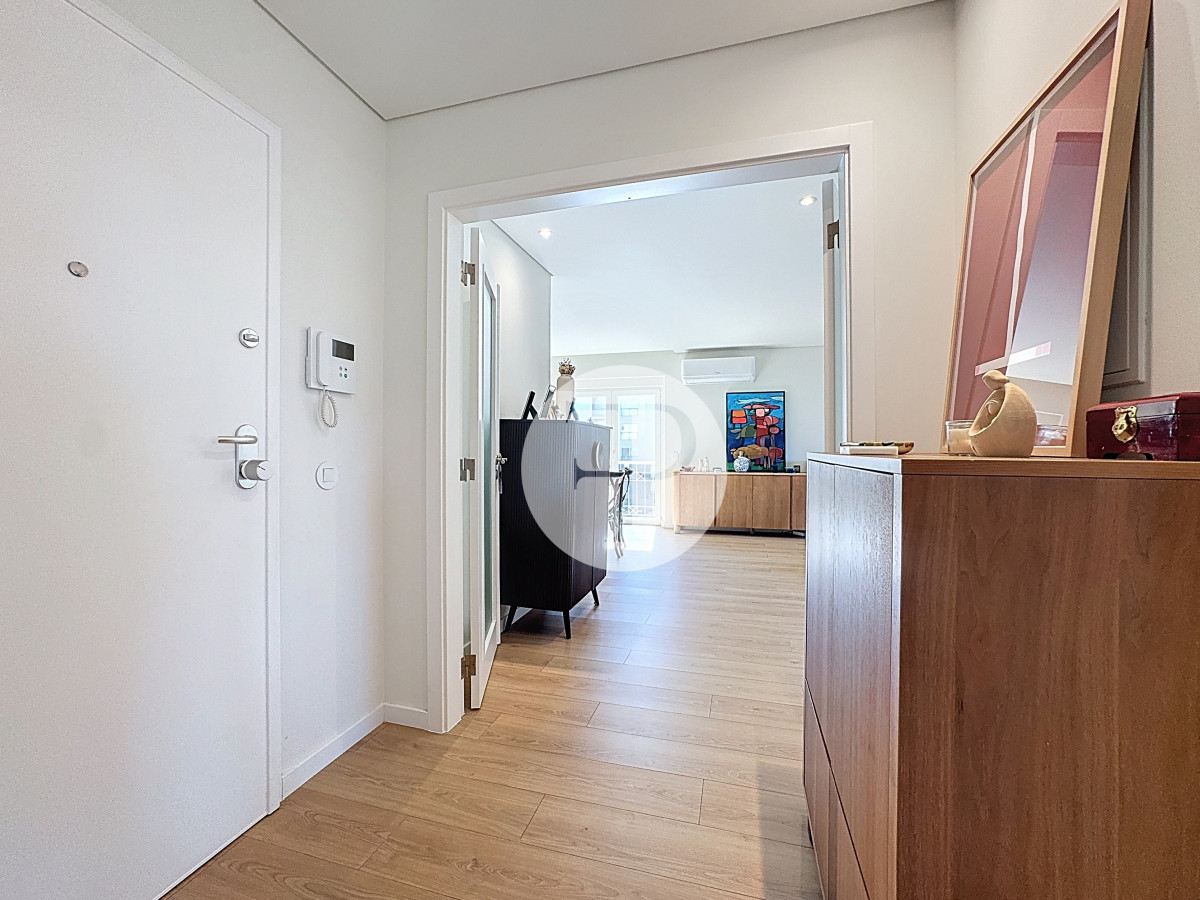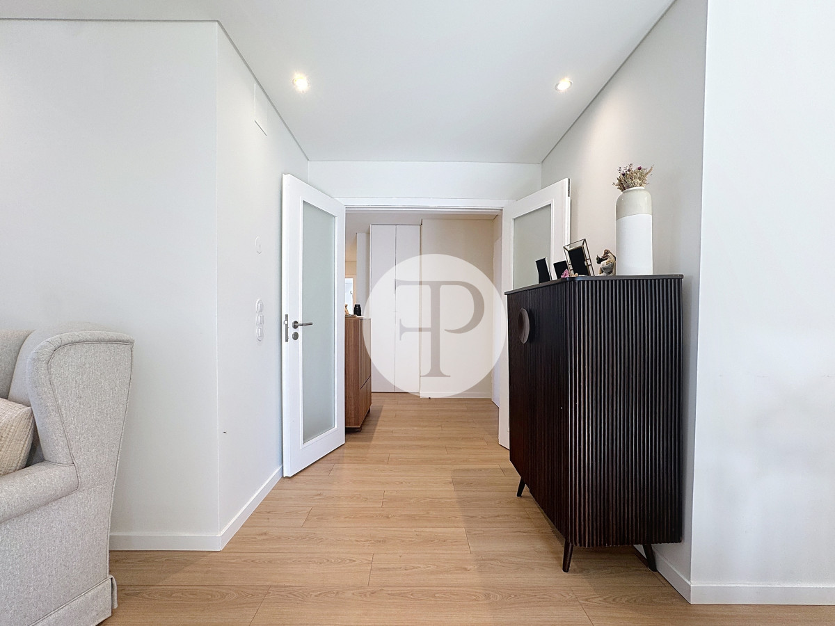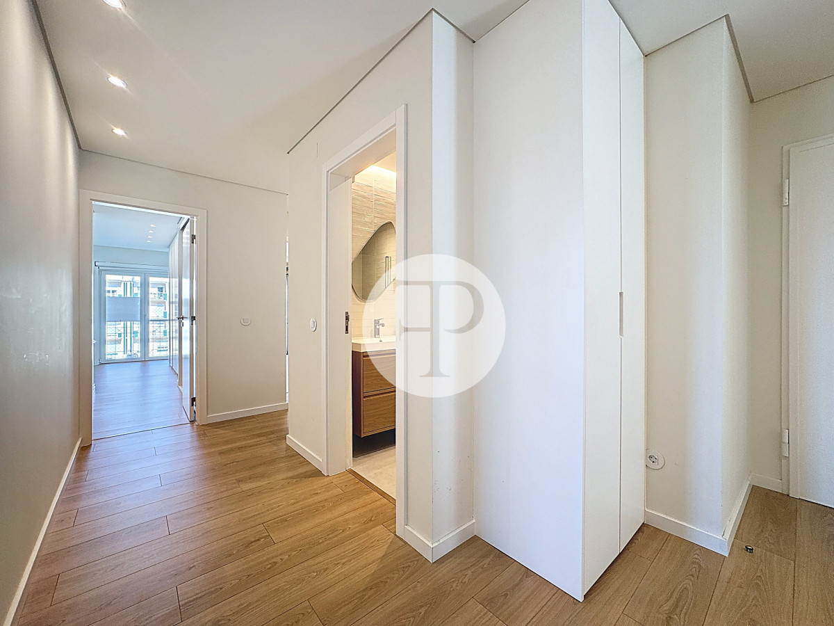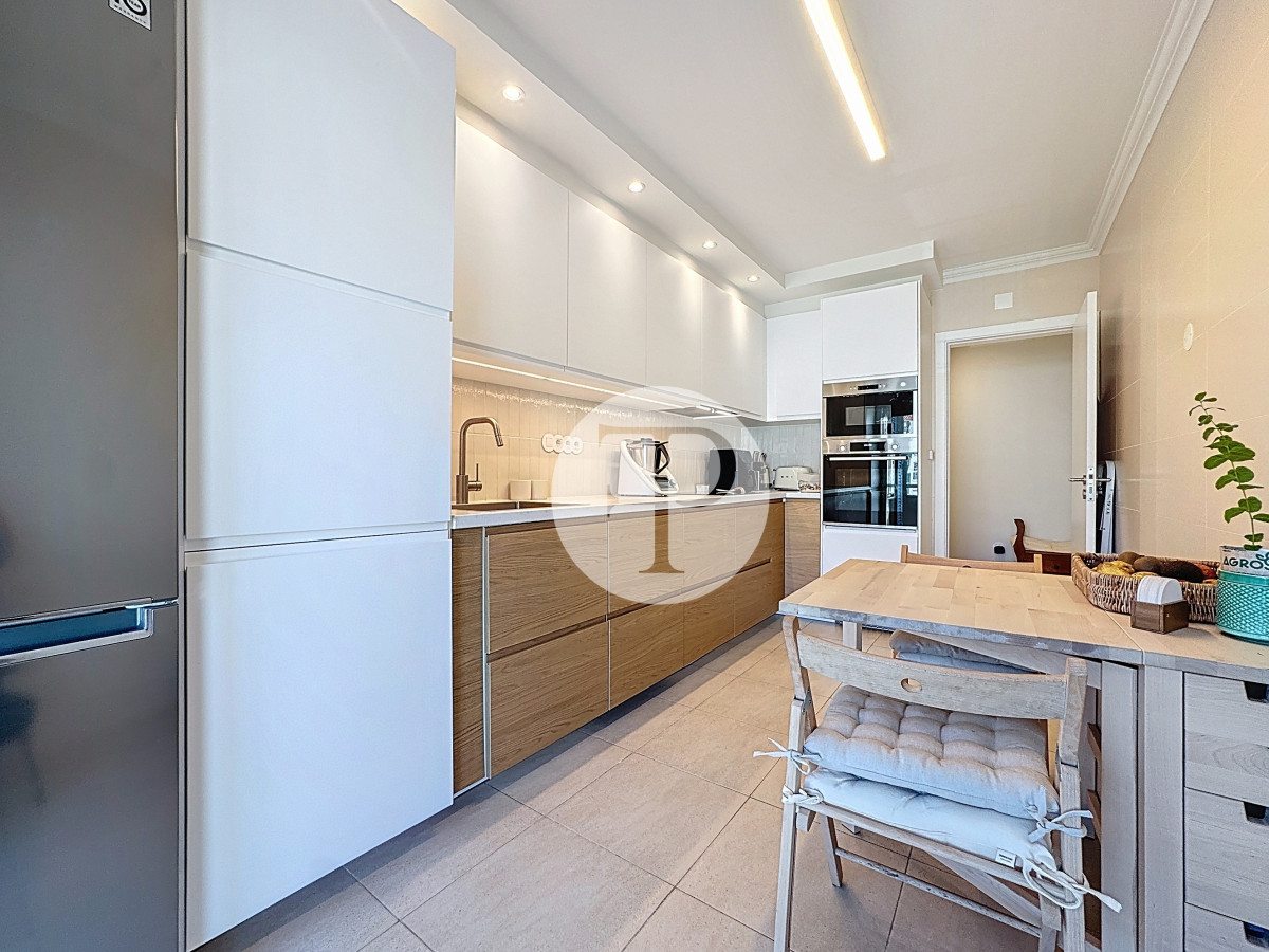 The living room, with 29 m², is spacious and filled with natural light, and offers direct access to a second balcony.