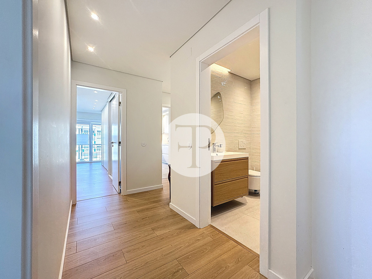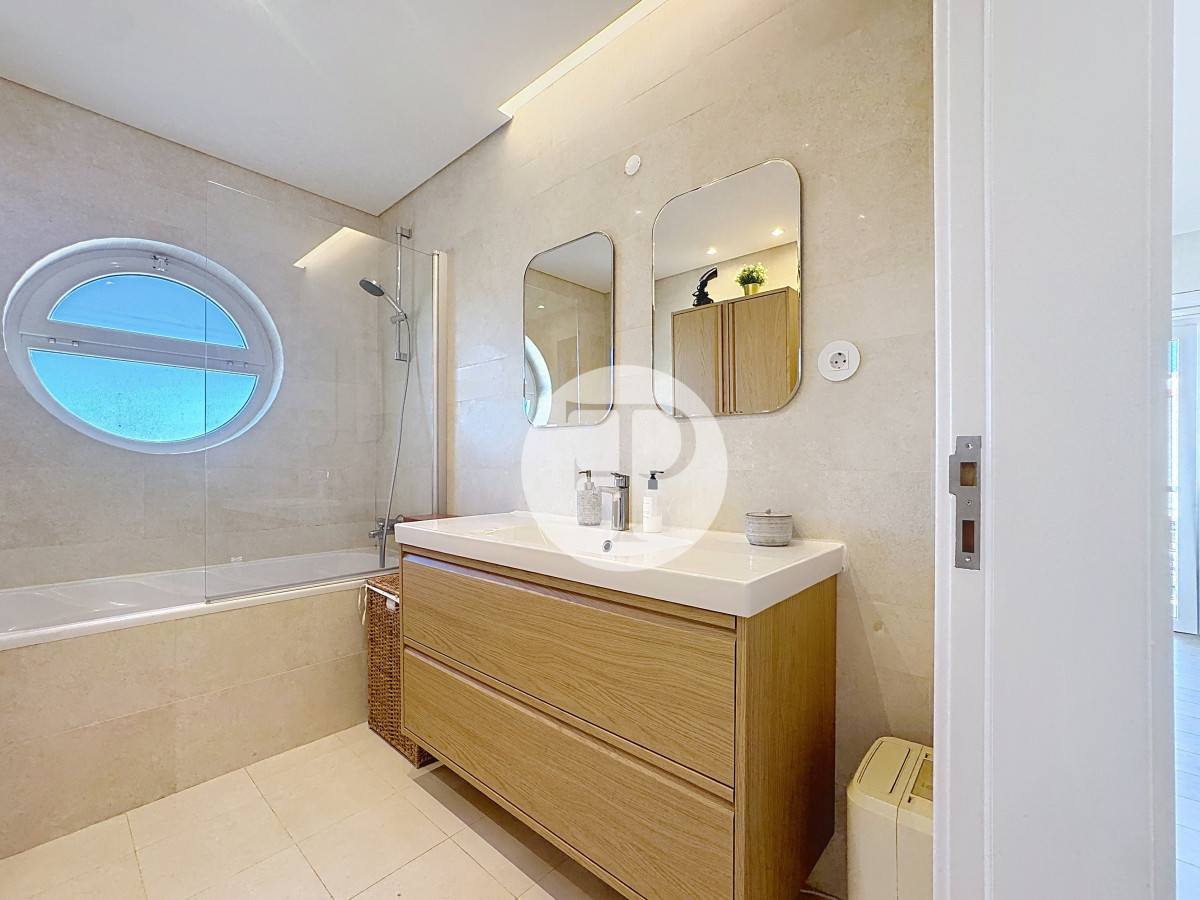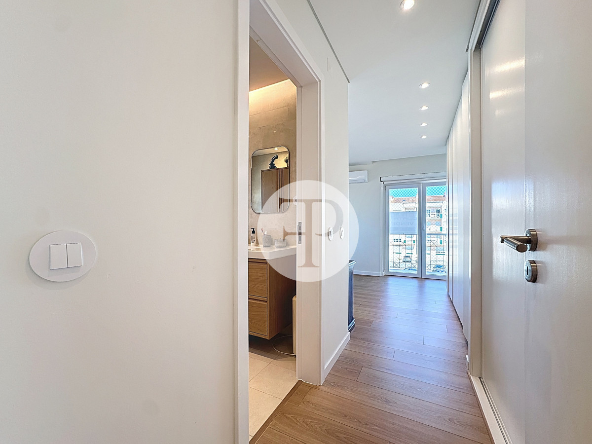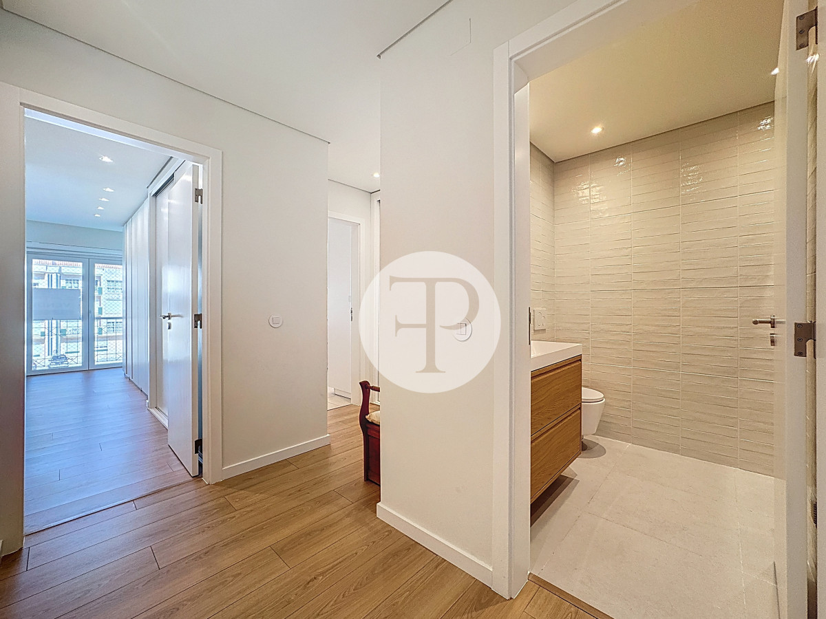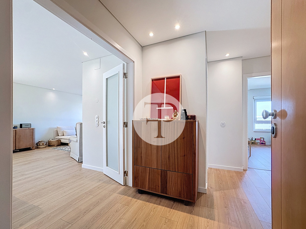 The living room, with 29 m², is spacious and filled with natural light, and offers direct access to a second balcony.