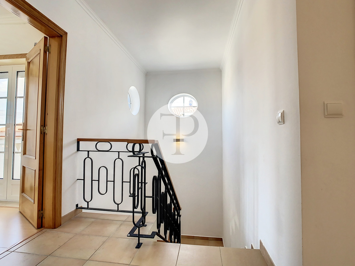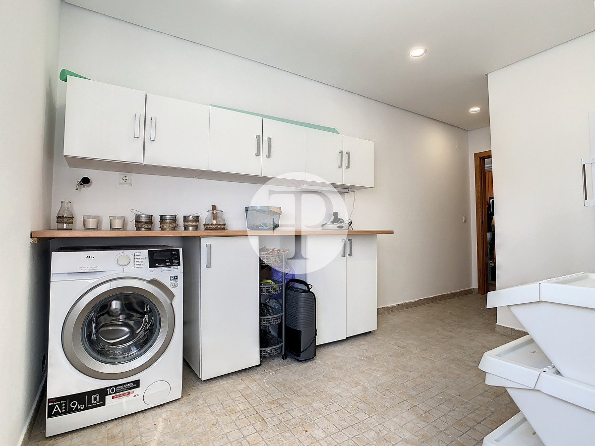 On the 1st floor, a fantastic 36 m2 living room with pellet fireplace for heating the entire house and direct access to the garden, a fully equipped kitchen, laundry, an office, and a social bathroom that supports this floor.
