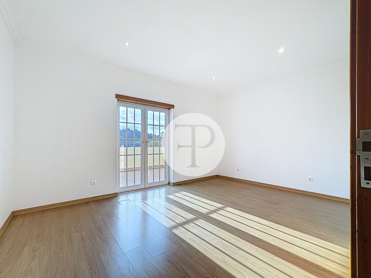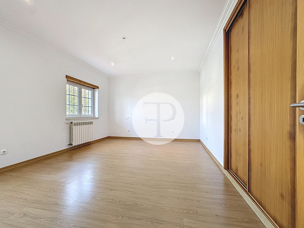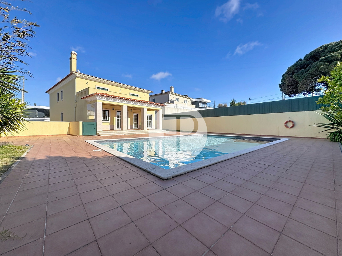 A piscina, com excelente exposição solar, é complementada por terraços amplos, jardim e zona de churrasqueira, criando um ambiente pensado para lazer e privacidade.
