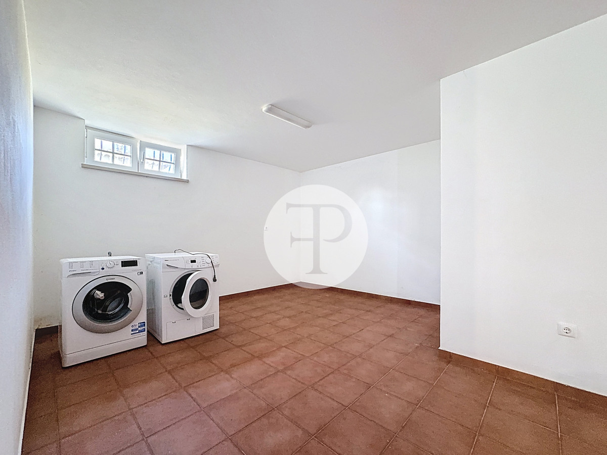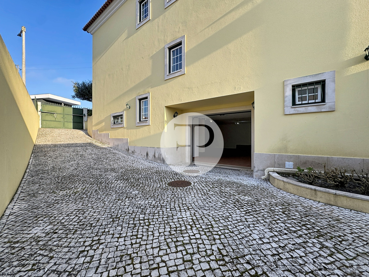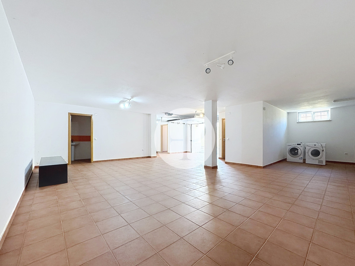 Inclui garagem com capacidade para vários veículos, lavandaria, casa de banho e áreas amplas com potencial para ginásio, escritório ou zona independente.