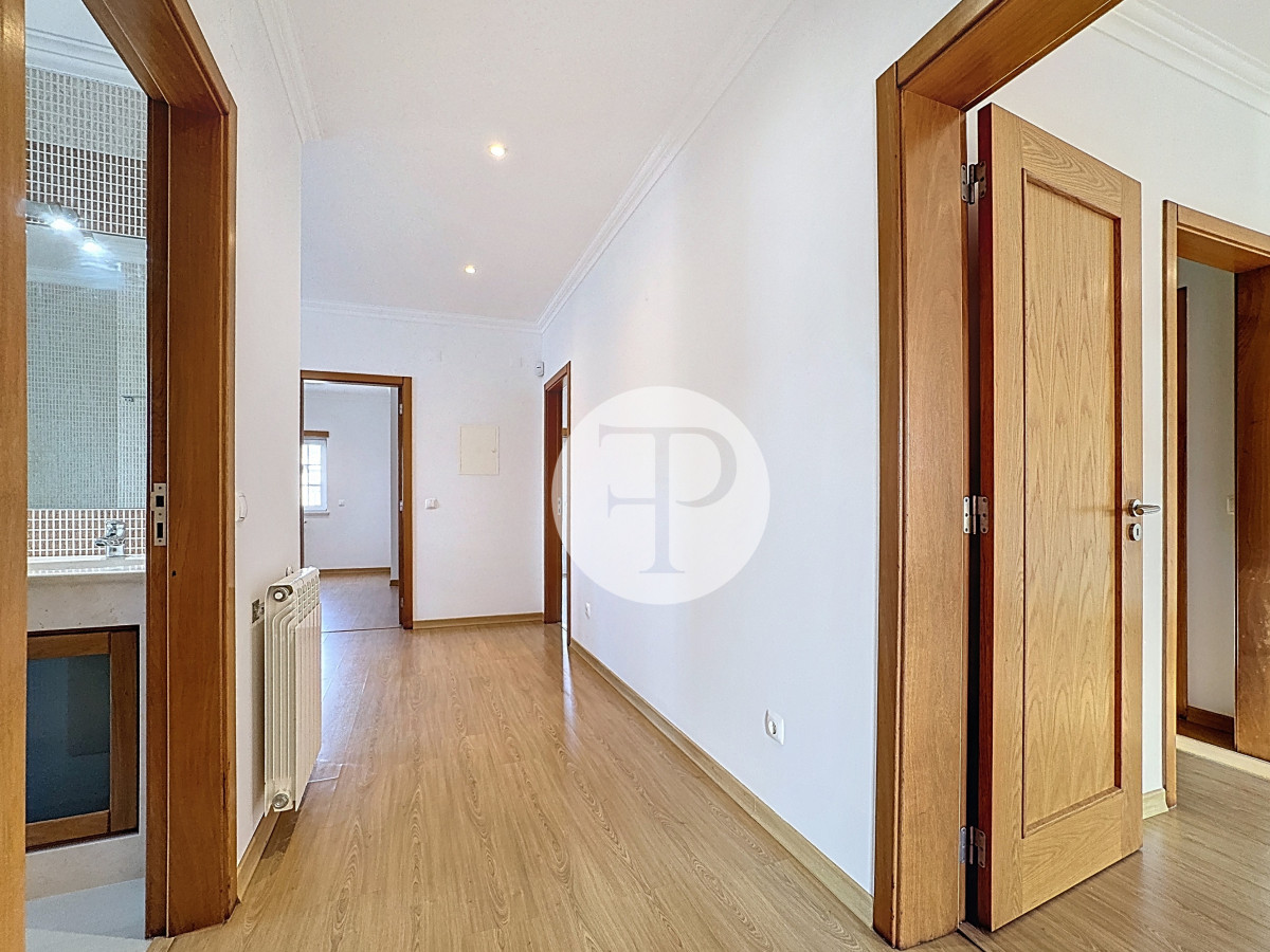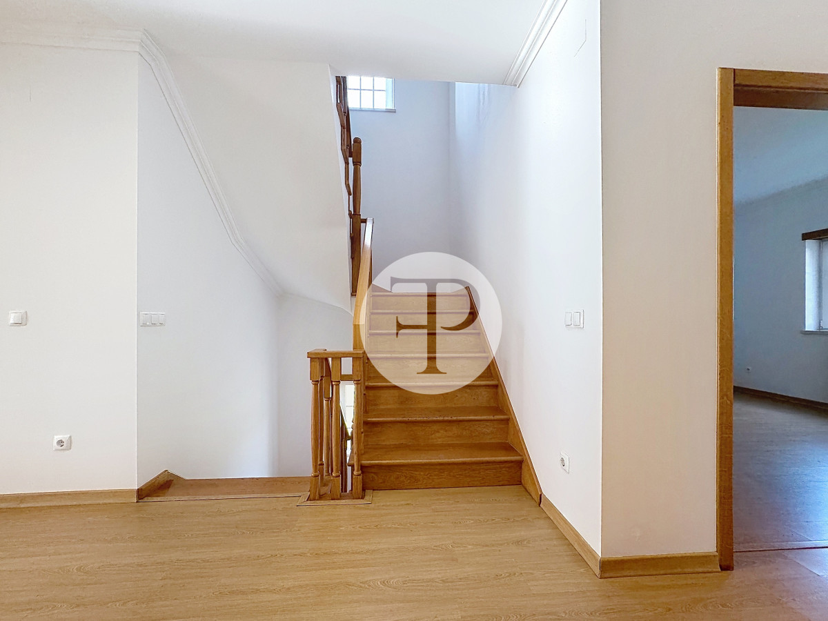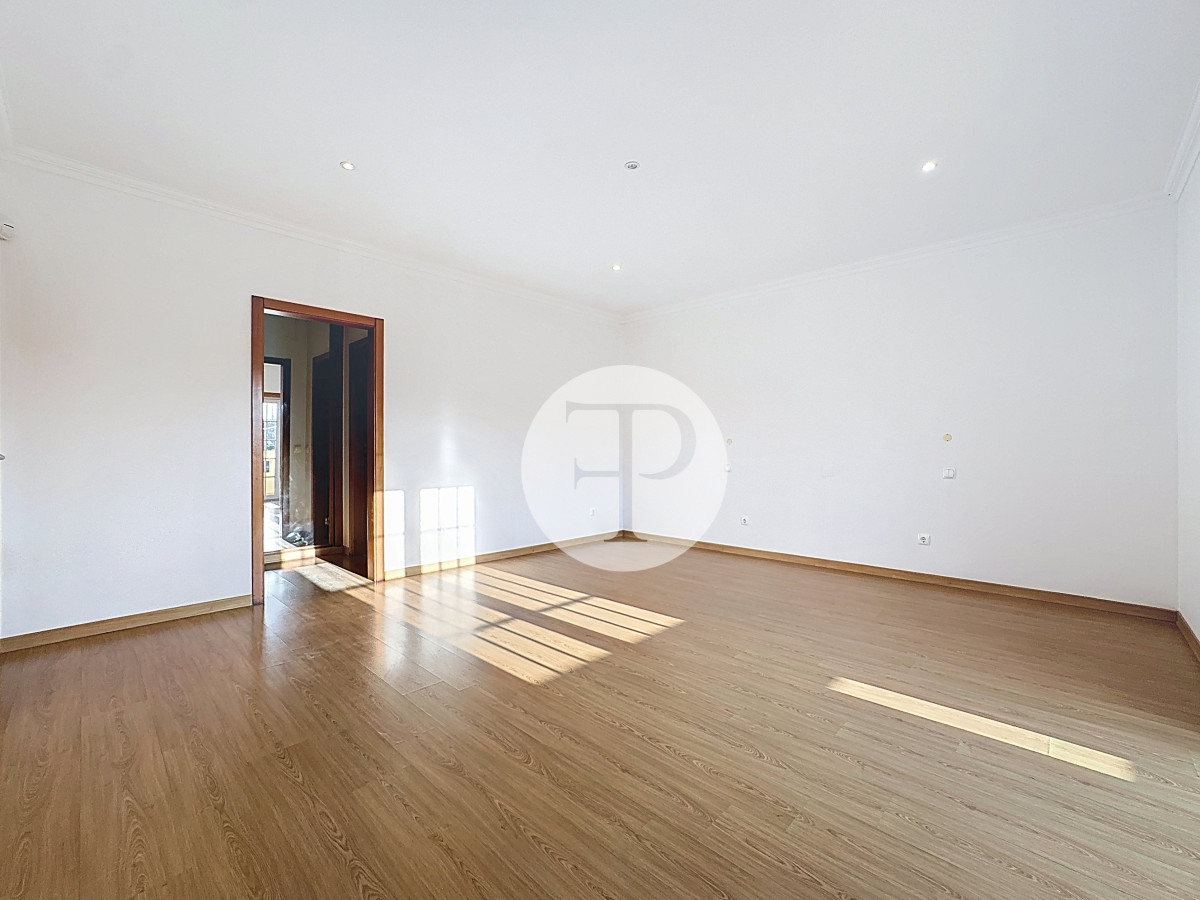 Inclui garagem com capacidade para vários veículos, lavandaria, casa de banho e áreas amplas com potencial para ginásio, escritório ou zona independente.