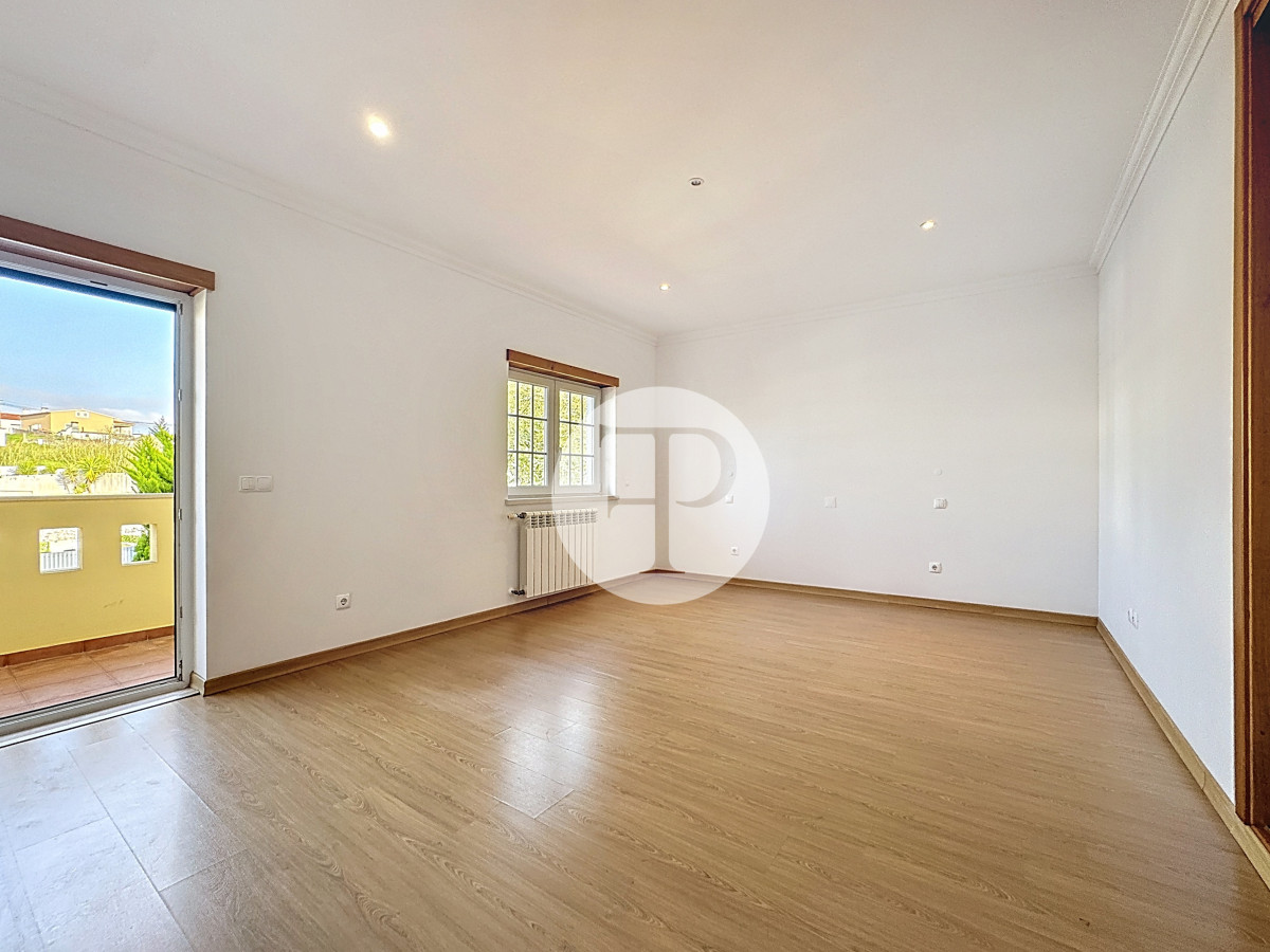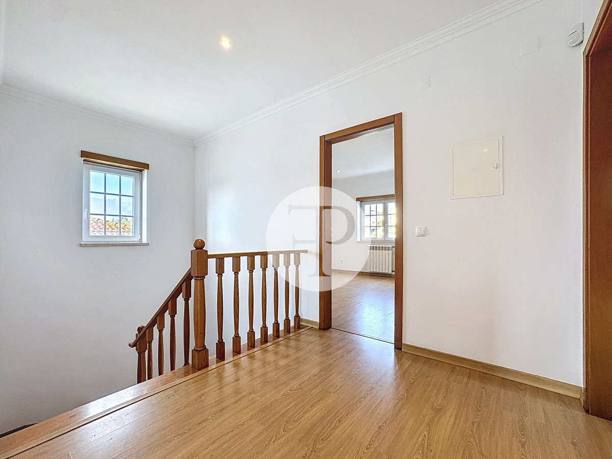 No piso superior, a área privada organiza-se com quatro quartos de boas dimensões, incluindo uma suíte com closet e varanda.