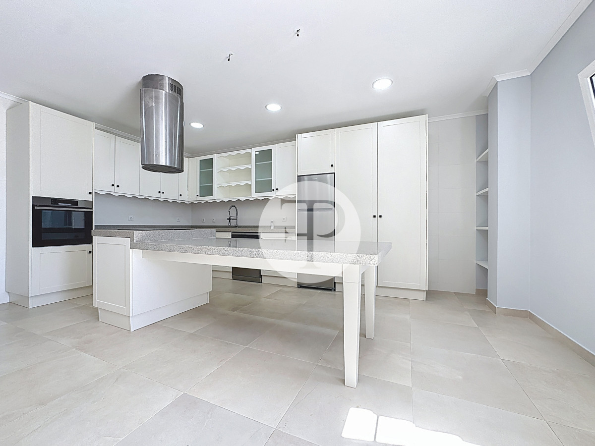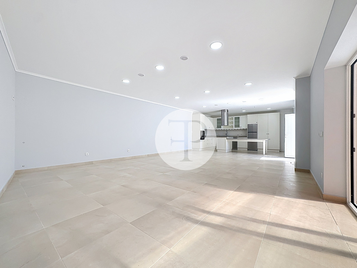 Na ala social, a sala principal e a cozinha articulam-se com o exterior, promovendo uma vivência funcional e confortável.