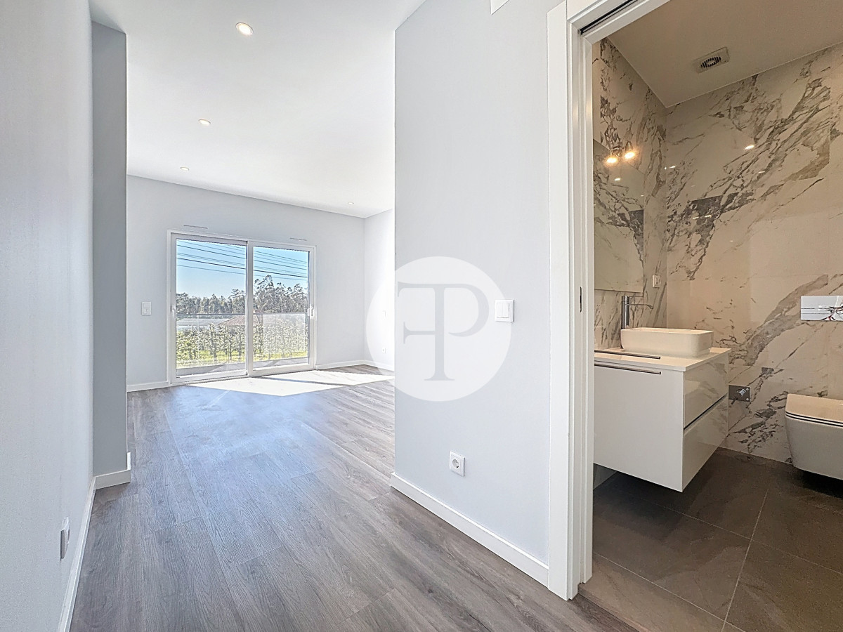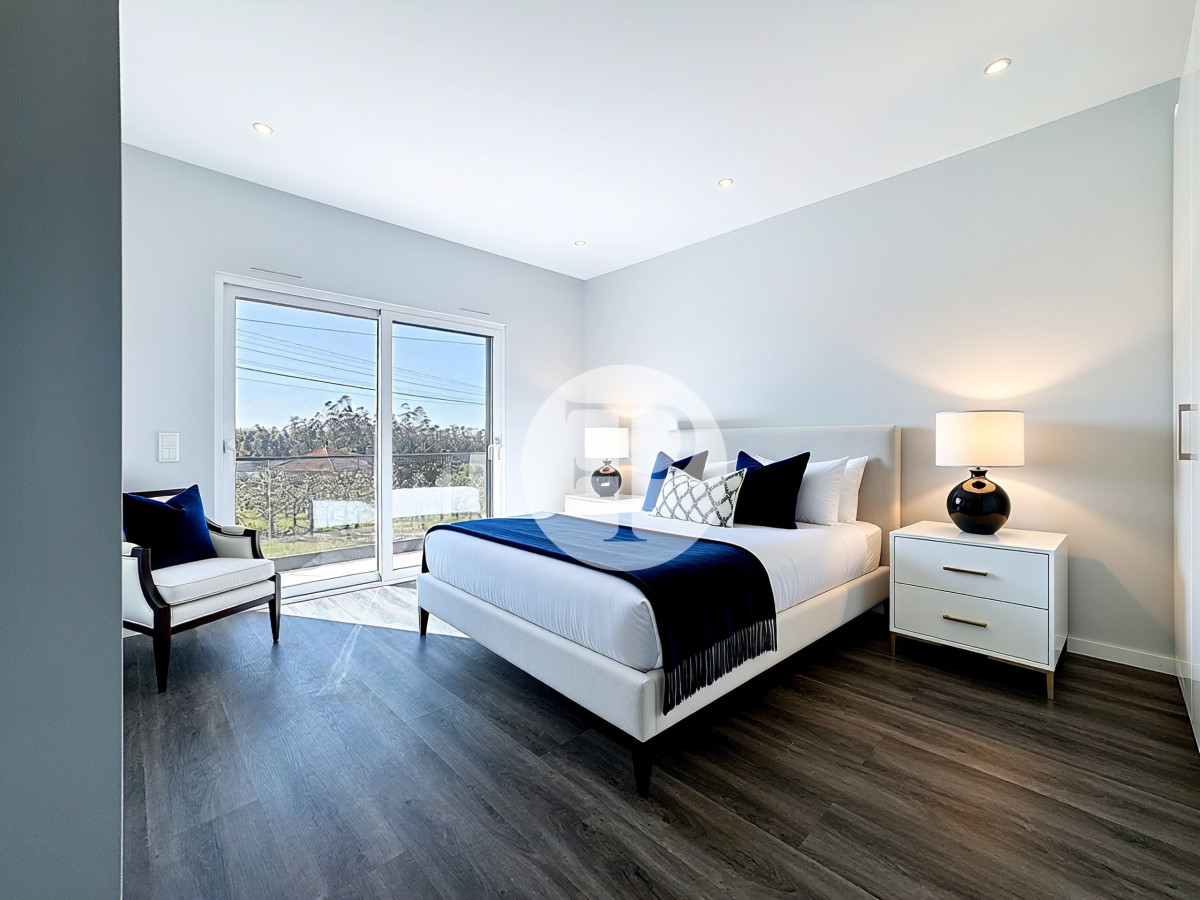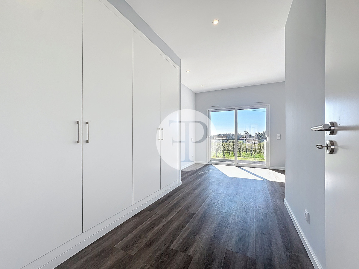 A ala privada integra quatro quartos, incluindo duas suítes, assegurando conforto e resguardo. Nesta zona encontra-se também um espaço complementar com cerca de 19 m², equipado com cozinha em open space.