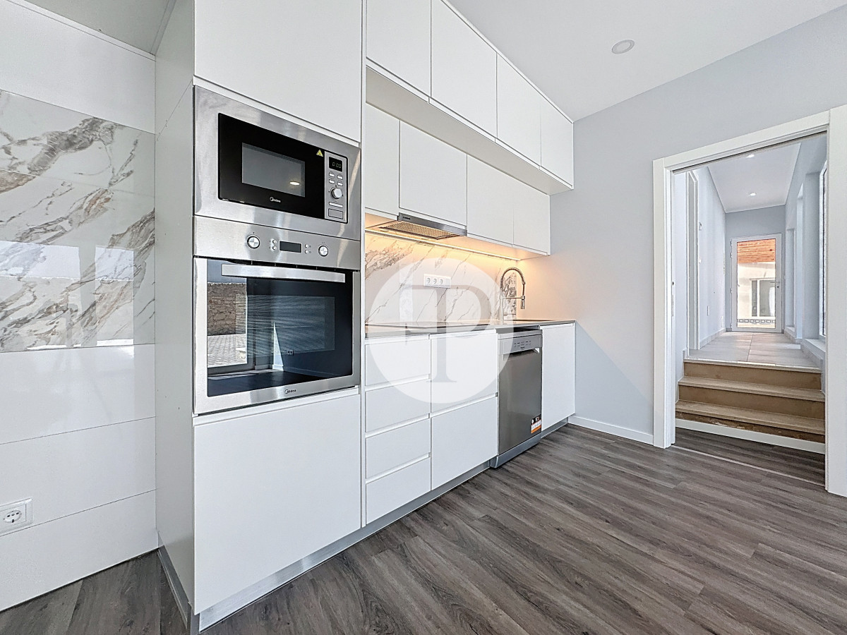 O logradouro, com cerca de 210 m², integra zona de churrasqueira e áreas de convívio.