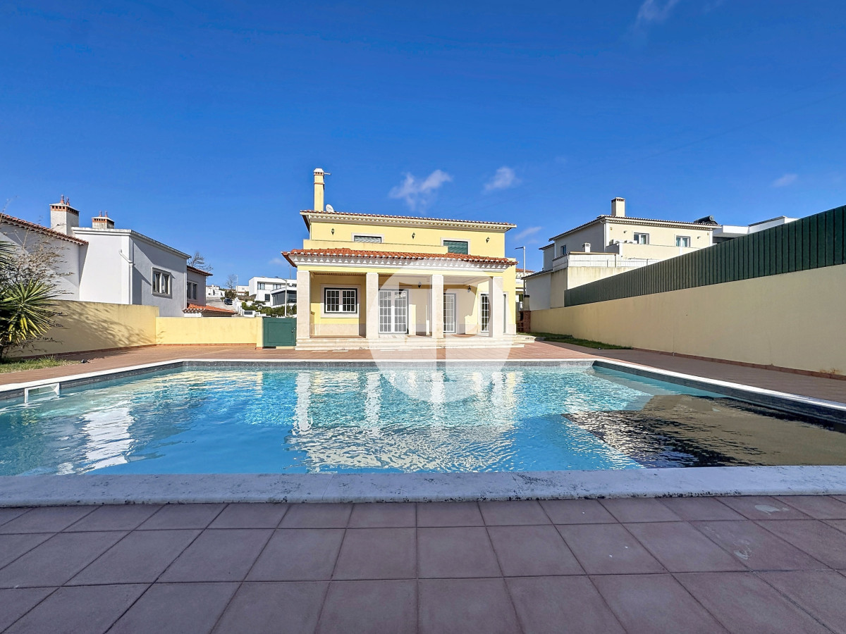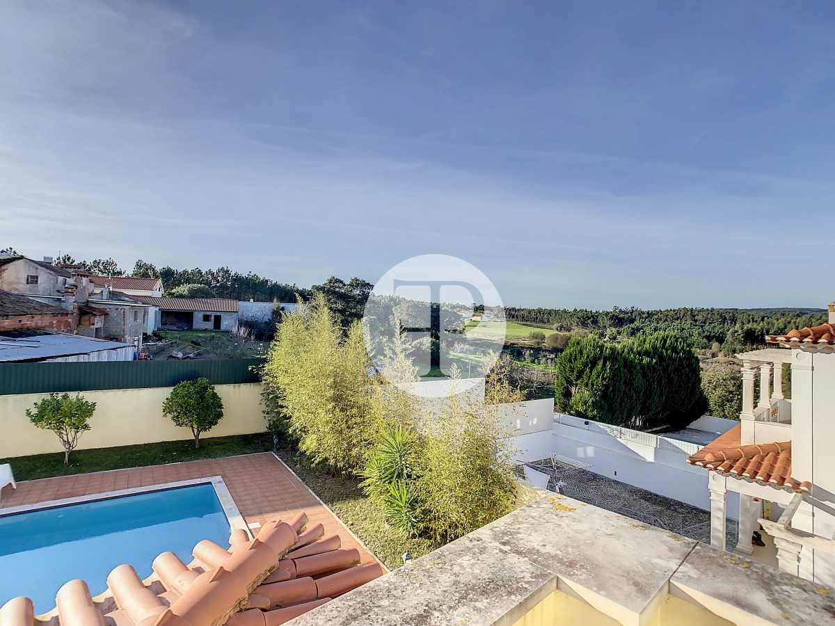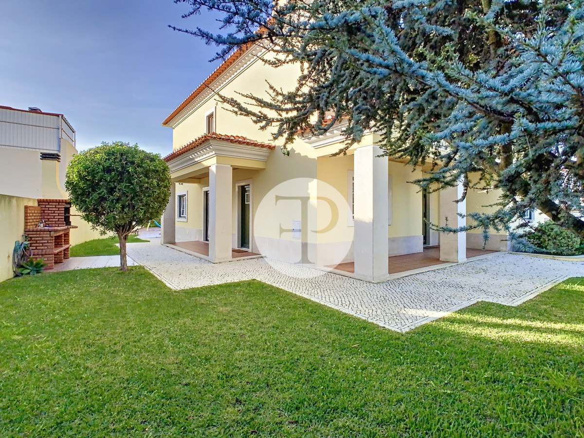 A piscina, com excelente exposição solar, é complementada por terraços amplos, jardim e zona de churrasqueira, criando um ambiente pensado para lazer e privacidade.