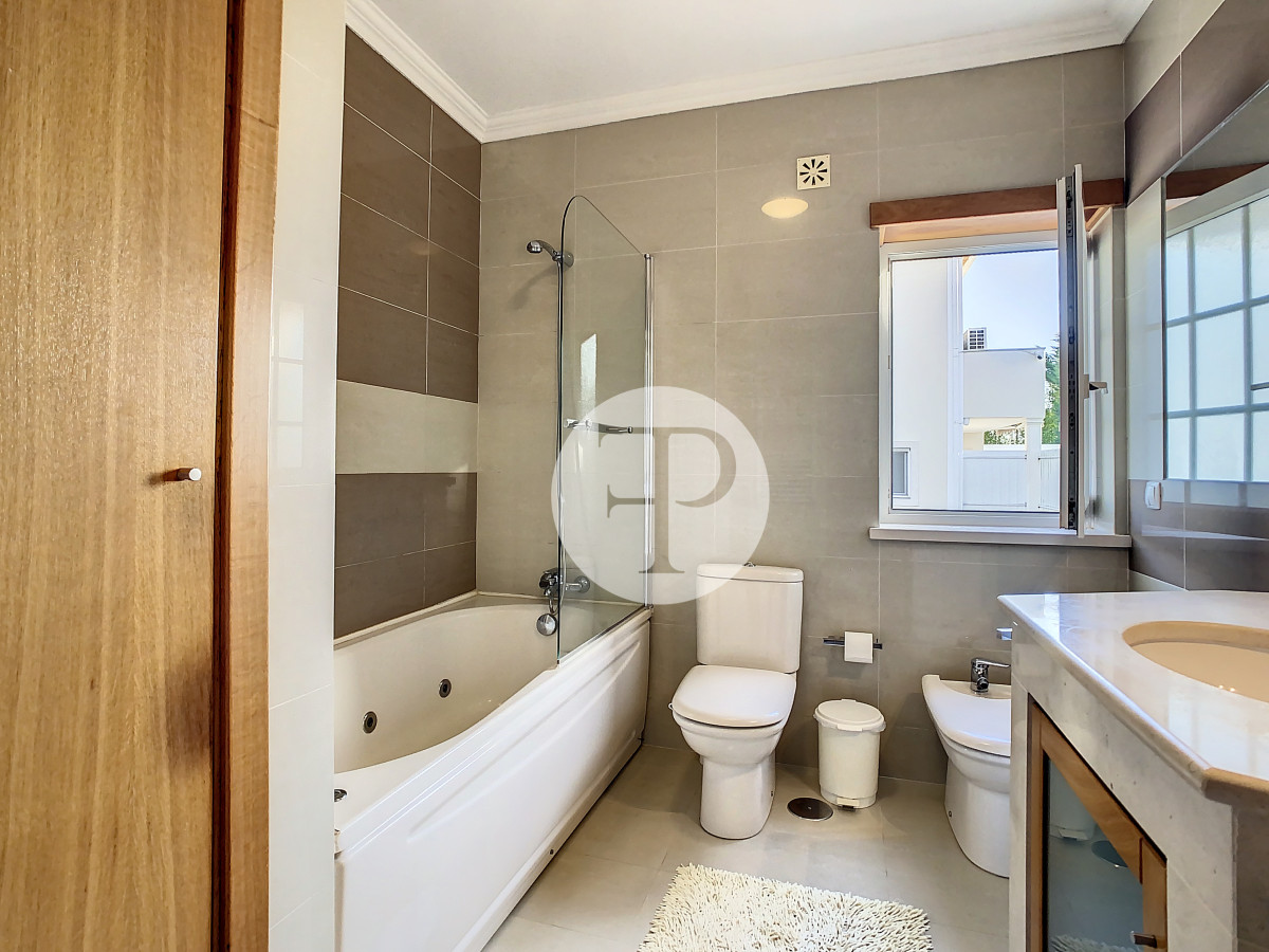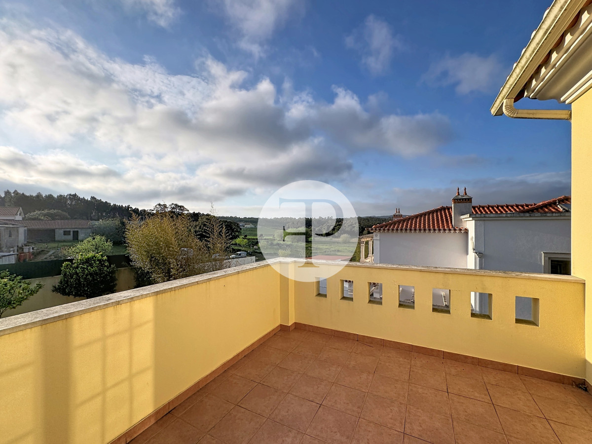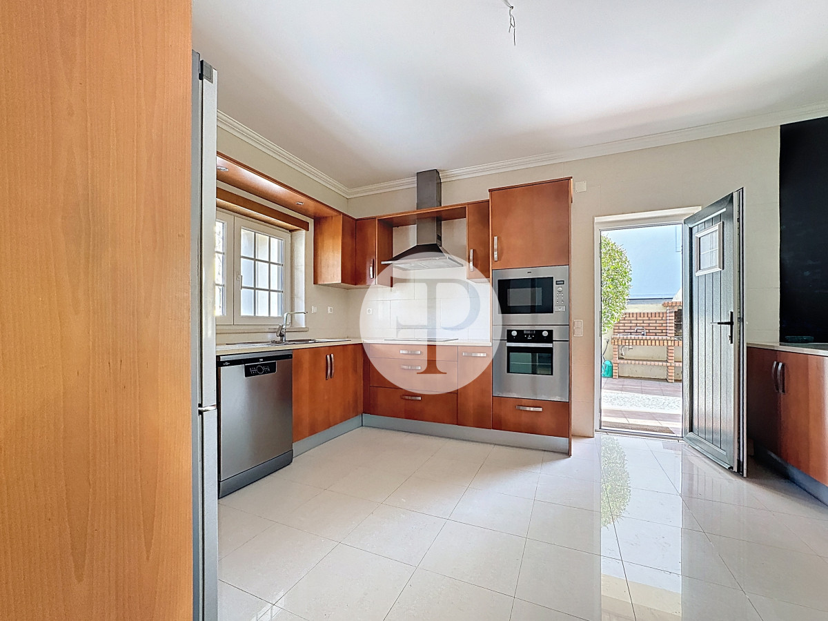A piscina, com excelente exposição solar, é complementada por terraços amplos, jardim e zona de churrasqueira, criando um ambiente pensado para lazer e privacidade.
