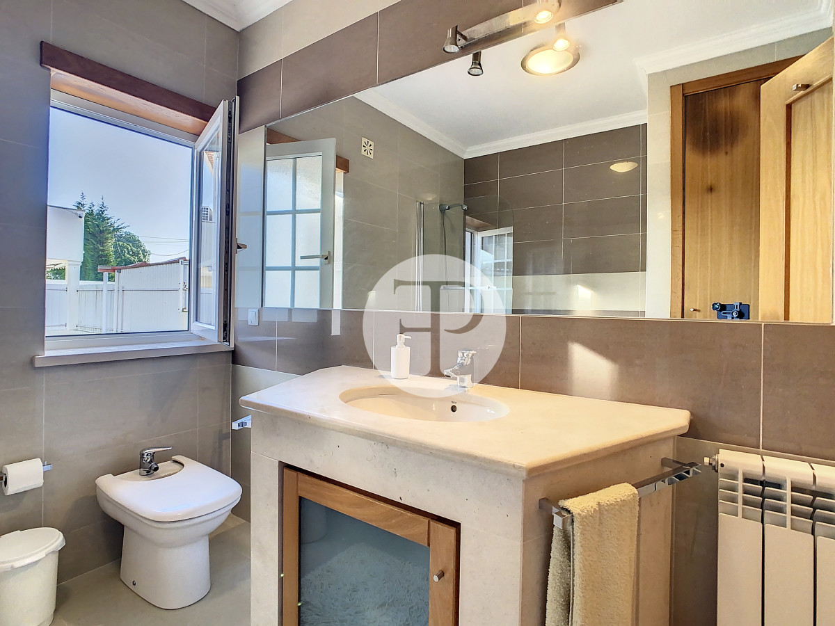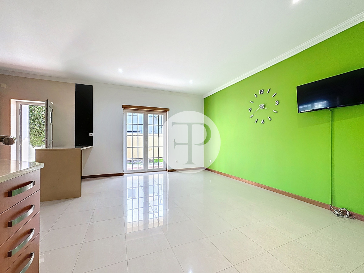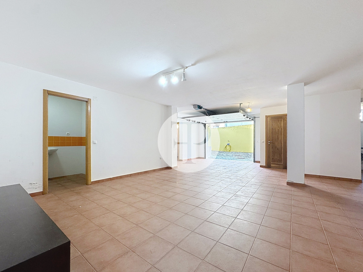 Inclui garagem com capacidade para vários veículos, lavandaria, casa de banho e áreas amplas com potencial para ginásio, escritório ou zona independente.