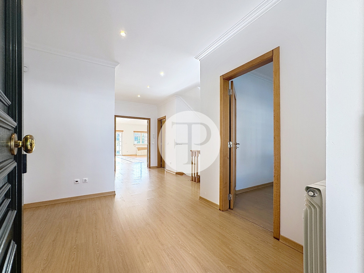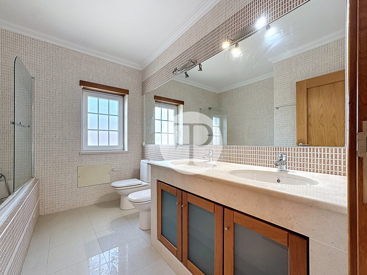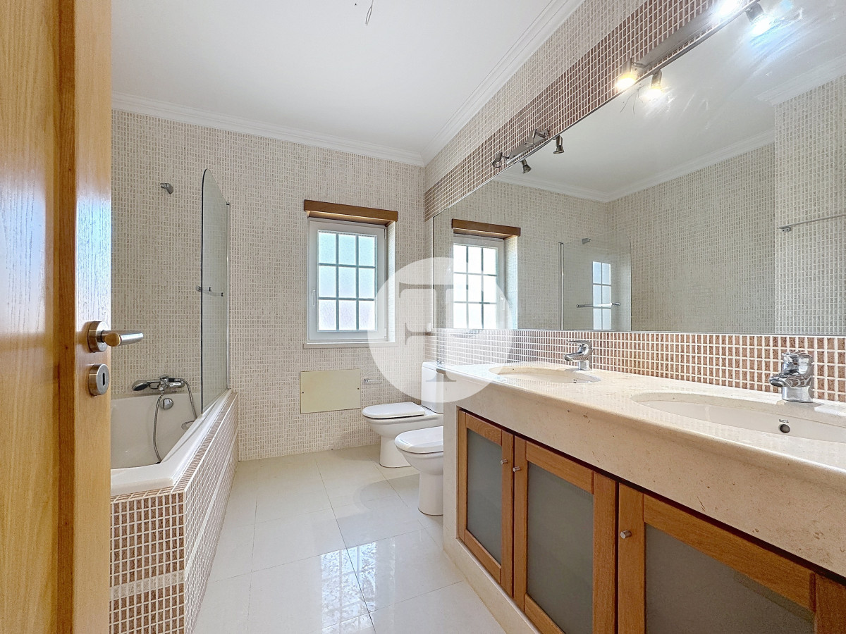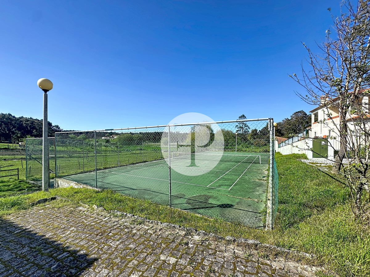 Inclui garagem com capacidade para vários veículos, lavandaria, casa de banho e áreas amplas com potencial para ginásio, escritório ou zona independente.
